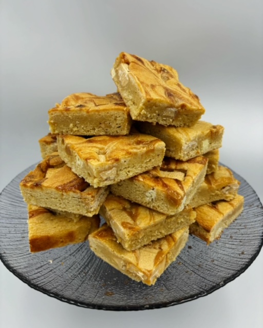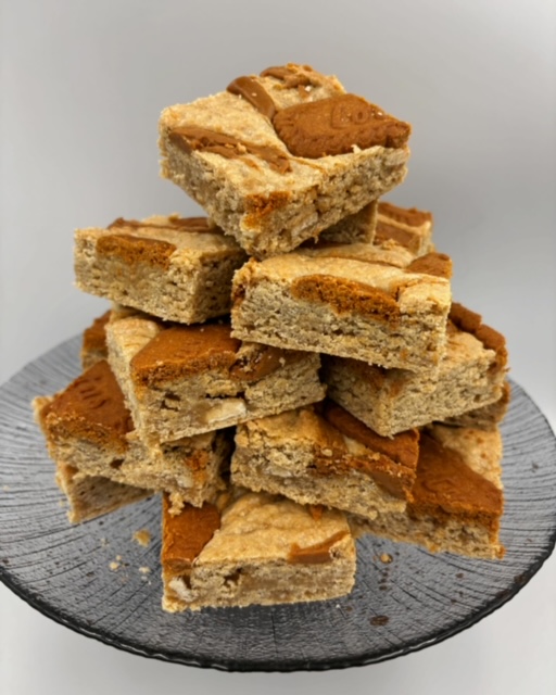 A buttery blondie swirled with smooth Biscoff and packed with creamy white chocolate chunks – pure indulgence, worthy of a celebration!